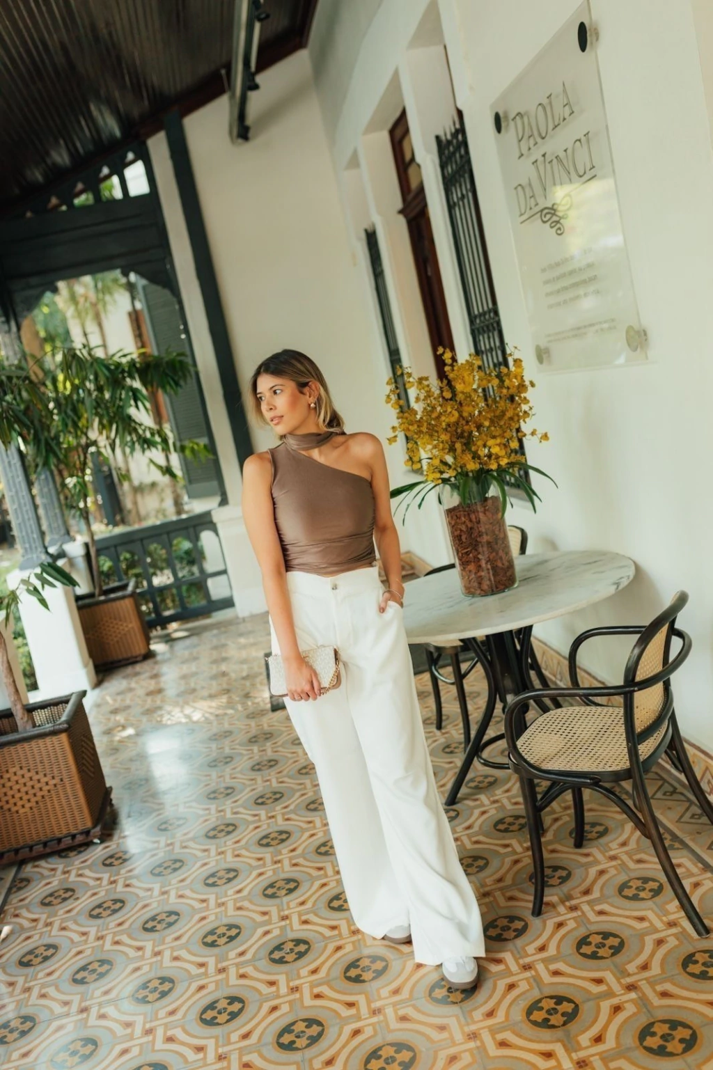 A Blusa Ellen é produzida na malha de poliamida (aquela malha geladinha e macia), com detalhe drapeado em toda lateral, modelagem um ombro só, forro do mesmo tecido no busto e possui uma faixa que pode ser usada de diferentes formas: no pescoço, jogada sobre o ombro, amarrada no corpo... você escolhe de acordo com o mood do dia! Perfeita pra você usar em ocasiões que você quer estar muito estilosa e confortável!